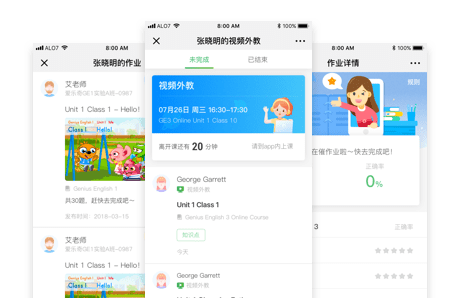 家校实时沟通平台,学习监督工具,媒体课堂展示,随时了解随堂信息。